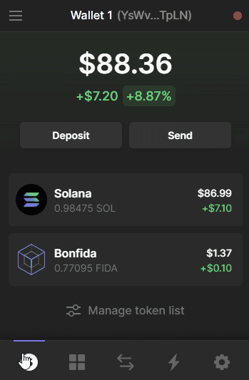 Here's a screenshot of a near-empty wallet depleted of SOL. (Bad wallet!)
