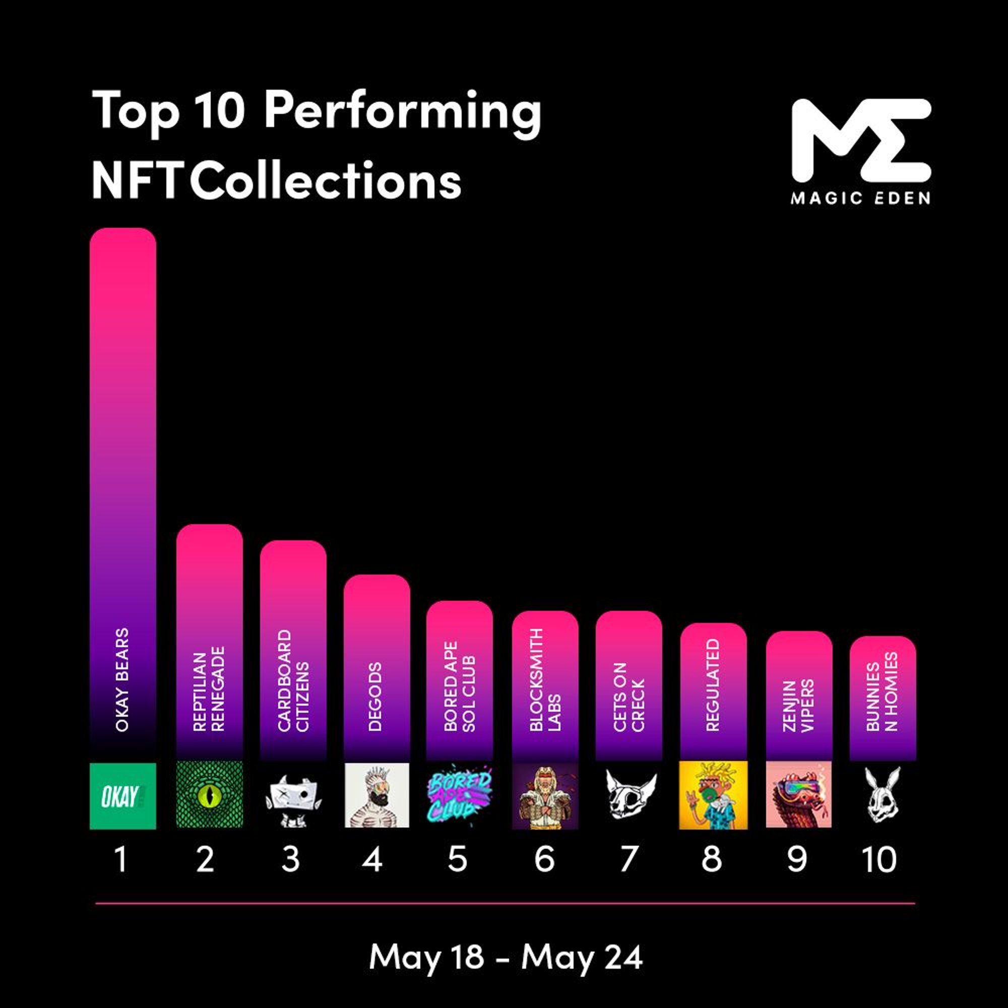 - Looking at Magic Eden’s floor price and volume chart on Okay Bears, before TAT’s mint their floor price hovered around 190 SOL and during the mint dropped to 160 SOL. Now, at 194 SOL. Cets saw a similar price correction. There’s always a demand for ‘blue-chip’ collections. Even if people flip, liquidity often flows back to more established projects.